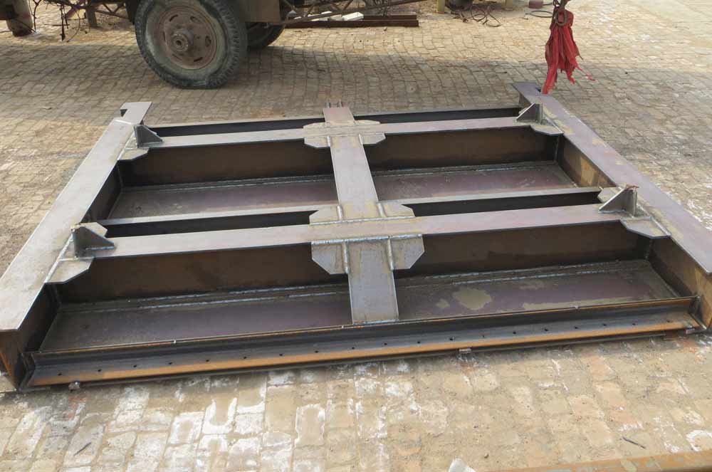 鋼閘門的組成和結構布置:平面鋼閘門是由活動的門葉結構、埋固構件和啟閉機機械三部分組成。門葉結構是用來封閉和開啟孔口的活動擋水結構。由門葉承重結構、行走支撐以及止水和吊具等組成。埋固構件包括(1)主滑道的軌道;(2)側輪和反輪的軌道;(3)門楣,底坎;(4)門槽護角、護面和底濫。支承邊梁是為于閘門兩邊支承在滑塊或滾輪等行走支撐上的豎向梁。主要承受由主梁等水平梁傳來的水壓力產(chǎn)生的彎矩,以及縱向聯(lián)結系和吊耳傳來的門重和啟閉力等豎向力產(chǎn)生的拉力或壓力。