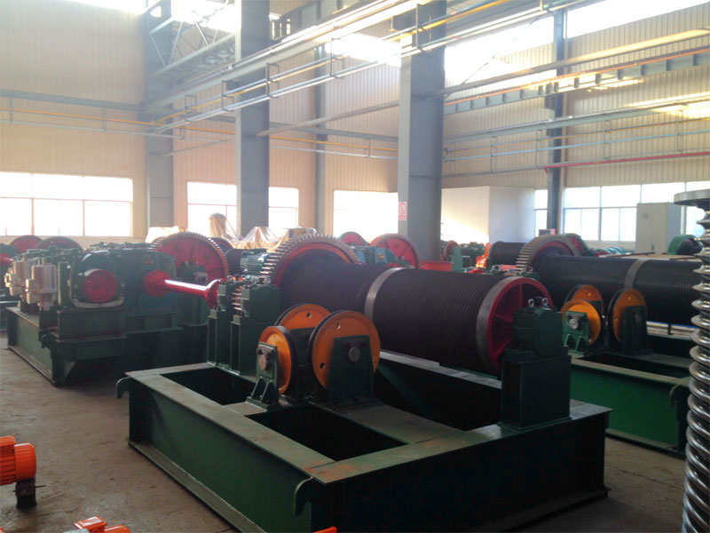 前者主提升機構設置在底部裝行走車輪的平面構架式臺車上;