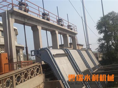 在電動(dòng)機(jī)的驅(qū)動(dòng)下,通過減速機(jī)減速后,帶動(dòng)鏈輪及鏈條運(yùn)動(dòng),固定在回轉(zhuǎn)鏈條上除污齒耙鏈條在柵后運(yùn)動(dòng)到底部,經(jīng)過導(dǎo)輪后翻轉(zhuǎn)到柵前迎水面的位置繼續(xù)運(yùn)動(dòng)插入固定柵條的間隙中上行,把柵前攔截的污物帶出水面,并隨著鏈條的運(yùn)動(dòng)到出渣口處自動(dòng)翻轉(zhuǎn),污物自卸到格柵后的輸送機(jī)或渣桶中,完成排污過程,液體則通過柵條的柵隙流過,整個(gè)工作狀態(tài)連續(xù)循環(huán)進(jìn)行。